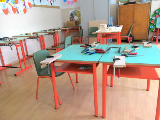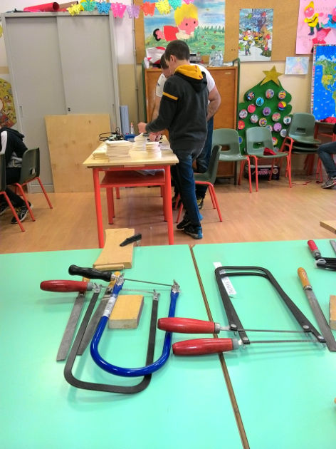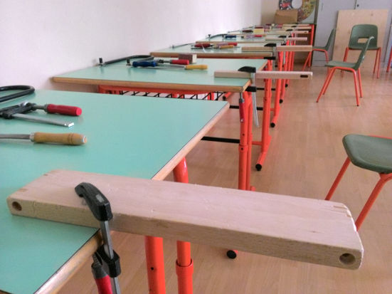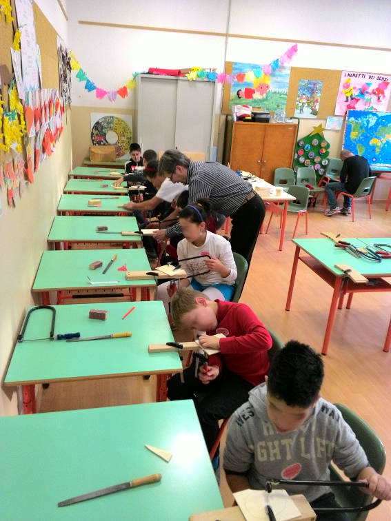 Sotto la guida di mani esperte, ecco i nostri ragazzi all'opera nella falegnameria.